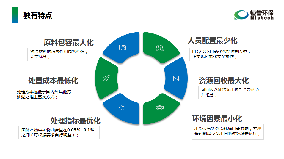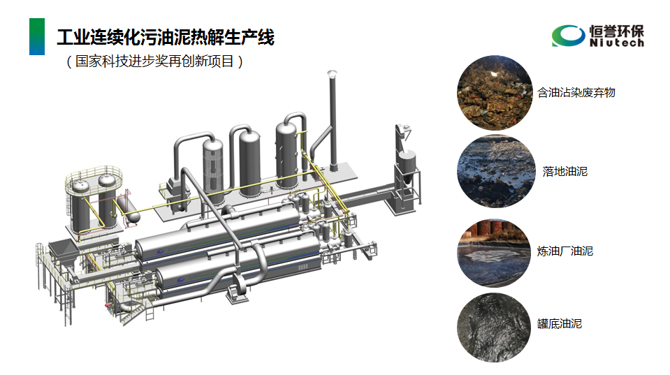 “恒譽環(huán)保自主研發(fā)的工業(yè)連續(xù)化含油污泥熱解生產(chǎn)線為國家科技進步獎再創(chuàng)新項目,具有原料包容最大化、處置成本最低化、資源回收最大化、處理指標(biāo)最優(yōu)化、環(huán)境因素最小化、人員配置最少化等獨有優(yōu)勢。”