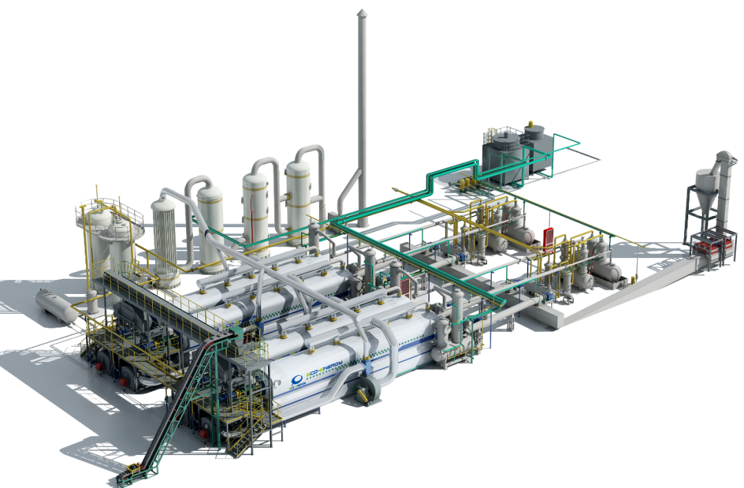 有機固廢危廢熱解處理工藝技術(shù)復雜、專業(yè)性較強,恒譽環(huán)保向客戶提供的熱解生產(chǎn)線是一種成套大型設備,包含了熱解系統(tǒng)、進料系統(tǒng)、出料系統(tǒng)、煙氣凈化系統(tǒng)、不凝可燃氣凈化系統(tǒng)、油氣冷卻分離系統(tǒng)、循環(huán)冷卻水系統(tǒng)、智能控制系統(tǒng)等多個子系統(tǒng),可以在安全、環(huán)保的前提下完成物料處理的全過程。